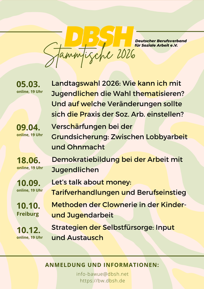 Der Deutsche Berufsverband für Soziale Arbeit e.V. (DBSH) ist der größte deutsche Berufs- und Fachverband für Soziale Arbeit und damit die berufsständische Vertretung der Sozialarbeiter*innen und Sozialpädagog*innen in Deutschland. Darüber hinaus vertritt der DBSH die Sozialarbeiter*innen in Deutschland auf der internationaler Ebene in der International Federation of Social Work. Als Gewerkschaft tritt der DBSH für die besser Bezahlung, bessere Arbeitsbedingungen und rechtliche Besserstellung ein.